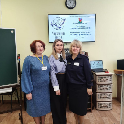 21 февраля состоялся третий тур «Учитель-наставник»  муниципального этапа конкурса «Учитель года России». Финалисты Корнева В.В., Еськова А.П., Зеленина Е.Г. в форме публичного выступления демонстрировали понимание педагогически целесообразных идей и подходов в решении актуальных задач отечественного образования, способность быть лидерами общественного мнения и популяризировать педагогическую профессию. Корнева Валентина Владимировна затронула проблему  объема, дозировки и коррекции домашних заданий. Еськова Анастасия Петровна предложила пути повышения престижа учительской профессии,  Зеленина Елена Геннадьевна  рассуждала о повышении мотивации детей к учебе.
