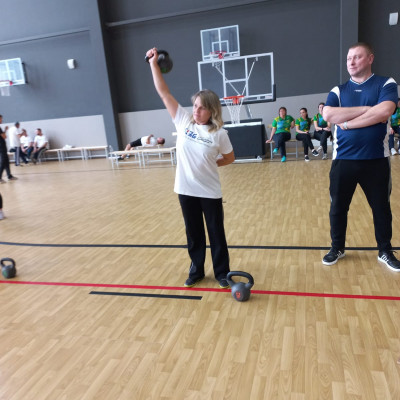 Спортсмены-педагоги прошли испытания по сдаче норм ГТО: прыжок в длину с места, приседания, гиря, пресс, отжимания, подтягивания, метание, узкая опора, наклоны, челночный бег.